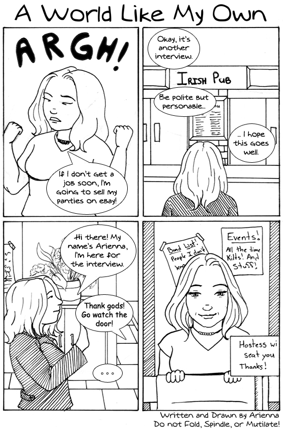 AriennaHi guys. Arienna here, with some serious news, in case you haven't already heard, please go to this link There's a nasty art-stealing bastard out there. T_T (No, not my art. Someone else's. Still important. Someone get my gun.) Woot! Another update, early. I sat down on my day off thursday and I drew two whole comics in a go. Now I just gotta draw for Friday's. I'm also scanning in new incentive art for this week so... go vote. :) *smooches* |