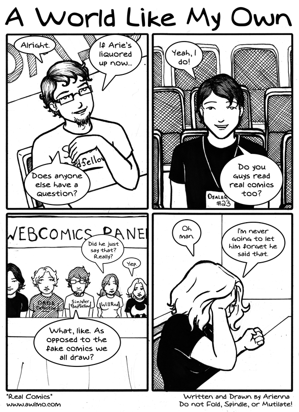 Last on the panel is the lovely Leah of Willrad fame, who we mentioned last comic. The girl combines an amazingly clever sense of humor, a very pretty face, and some serious talent.