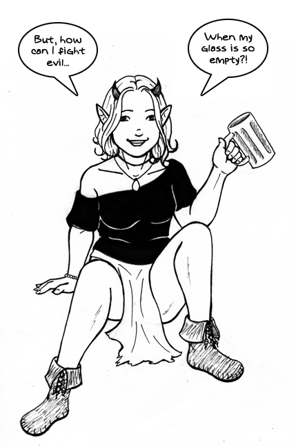 Filler today. ^_^ I don't get as many hits on the weekend as I get during the week so I don't want to really use story arc material on days when no one's gonna see it... And I've noticed that when I'm updating 4 times a week, it's really hard for me to get non-comic art done. Soo... I'm thinking of taking a page out of Jennie's book and posting, well, random stuff on my Sunday update. ^_^ Filler, art I'm working on, redraws of old comics... whatever it is I want to work on during that week. -This- particular piece is a drawing of my NERO larp character, Blue. Expect to see larp-related comics at some point. ^_^