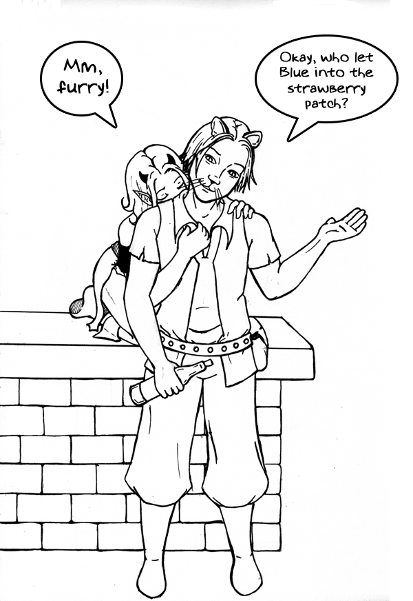 More larp-inspired art for this week's sunday update. I'm actually trying to put together a portfolio (with help from more aggressive people than myself <3)of mostly pencil and ink illustrations with an eye towards selling commissions of my favorite kind - character drawings. Putting together a collection of work is hard work since so much of my art time is all awlmo-owned. But! This is actually good news. If you like my art style and want an illustration of your role-playing character or you in your SCA or Ren faire garb, I'm up for doing them, one at a time, for $10 a piece (plus shipping if you want the original inks, I reserve the rights to publish and reproduce the work, etc, etc), while I'm building up my portfolio. This is -way- cheaper than the minimum wage my co-conspirators are going to force me to charge when the Plan is up and running and as an added bonus, I'll post completed works as Sunday updates, with a link to your website or role-playing site or whatever (provided it falls within the realm of acceptable material to me).