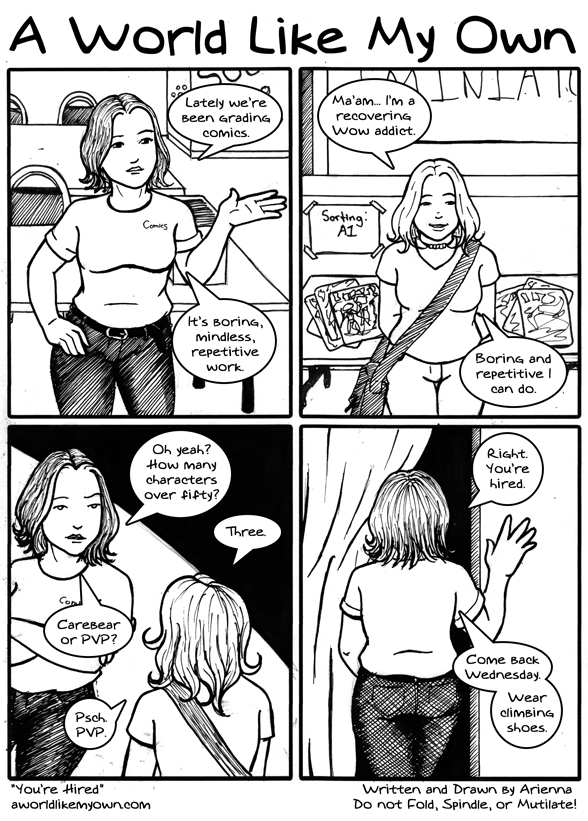 AriennaHurrah, it's a comic. And I've got a couple days in a row off from work to get the next one done... But Trent's coming over so everyone cross your fingers and thing productive thoughts for me. ^_~ |