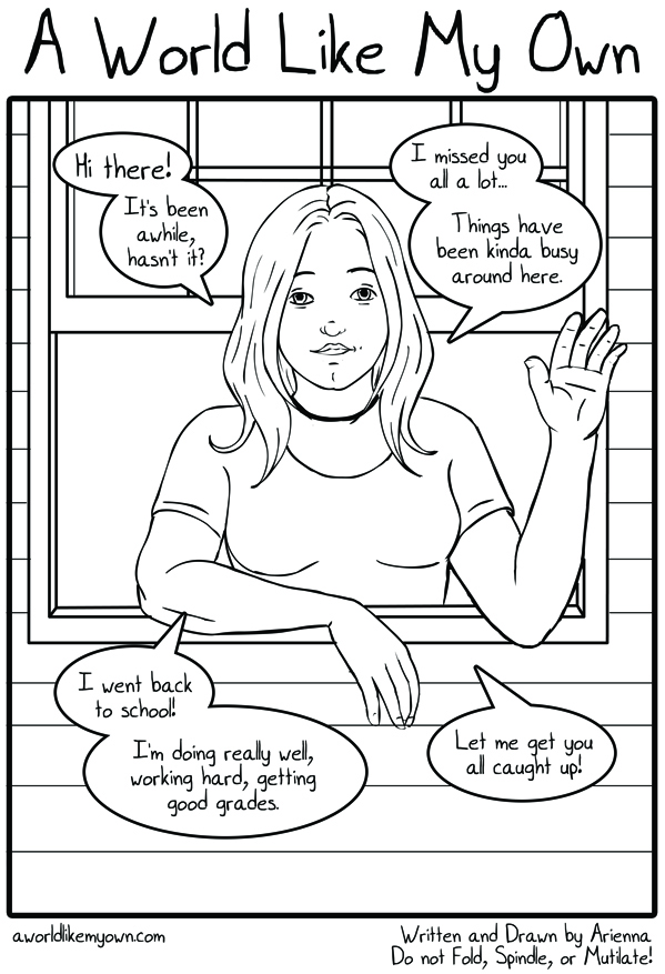 AriennaI still can't commit to a steady update schedule... I go to school full time and i work a lot for that whole paying rent and eating stuff :) But I miss drawing comics and telling you folks my stories, so here we are. ^_^ On the other hand, I can write fairly often. If you miss hearing about my adventures in one form or another, feel free to swing by my blog here on the site. I update it pretty frequently. |