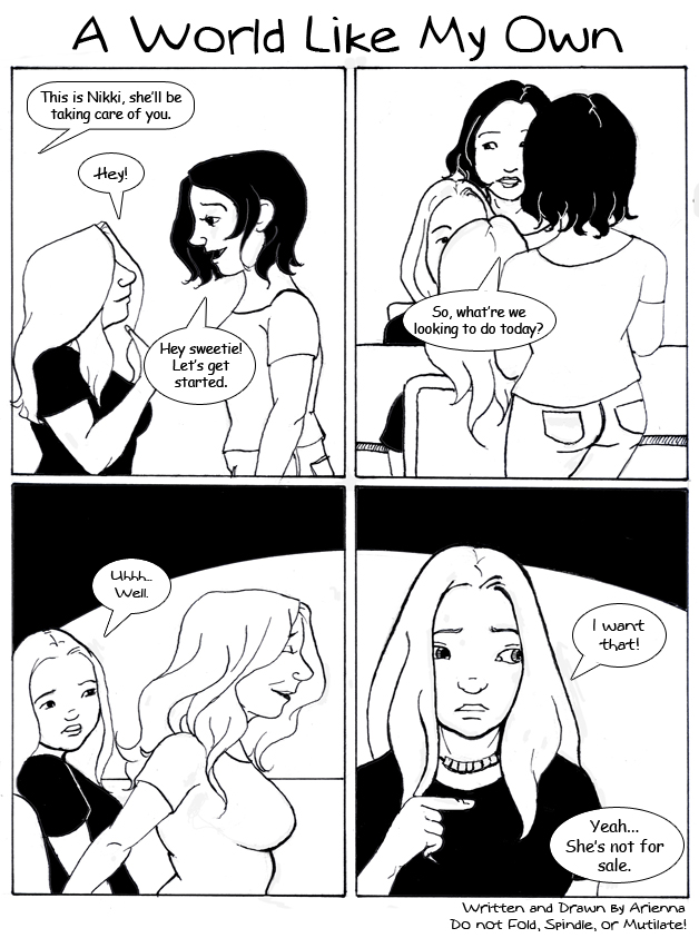 AriennaY'know... everytime I look at Jennie's comic I get this urge to start doing pen and ink - the things she does with it and various other artists (Terry Moore! Migawds), just makes me soooo jealous. So I picked up my inks and my favorite pen and an hour later I'm covered in india ink and ready to chew nibs. Oh well. ^_^; Get used to this look to the comic, I'm going to try to practice the technique until it stops lookin` so... bleh. |